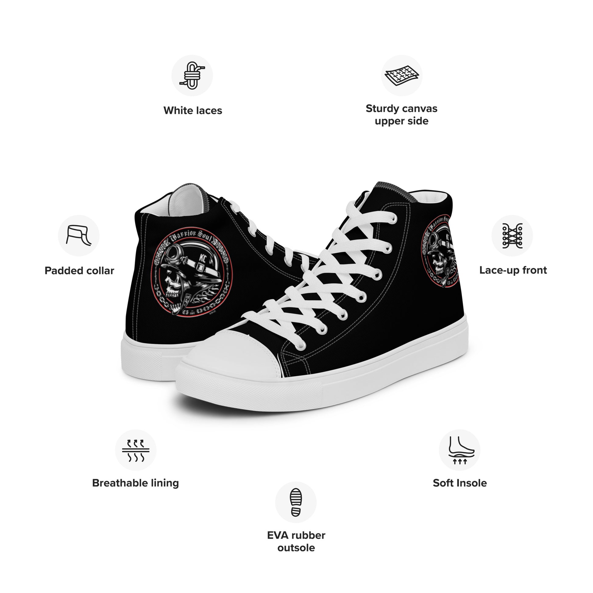 Stage Dive away at your next Punk Rock Show in these Rad Warrior Soul 'Biker Logo' High Top Canvas Shoes. These handmade, Slam Dancin kicks are sure to 'Speed' up your outfit. Go Grind in yours now!